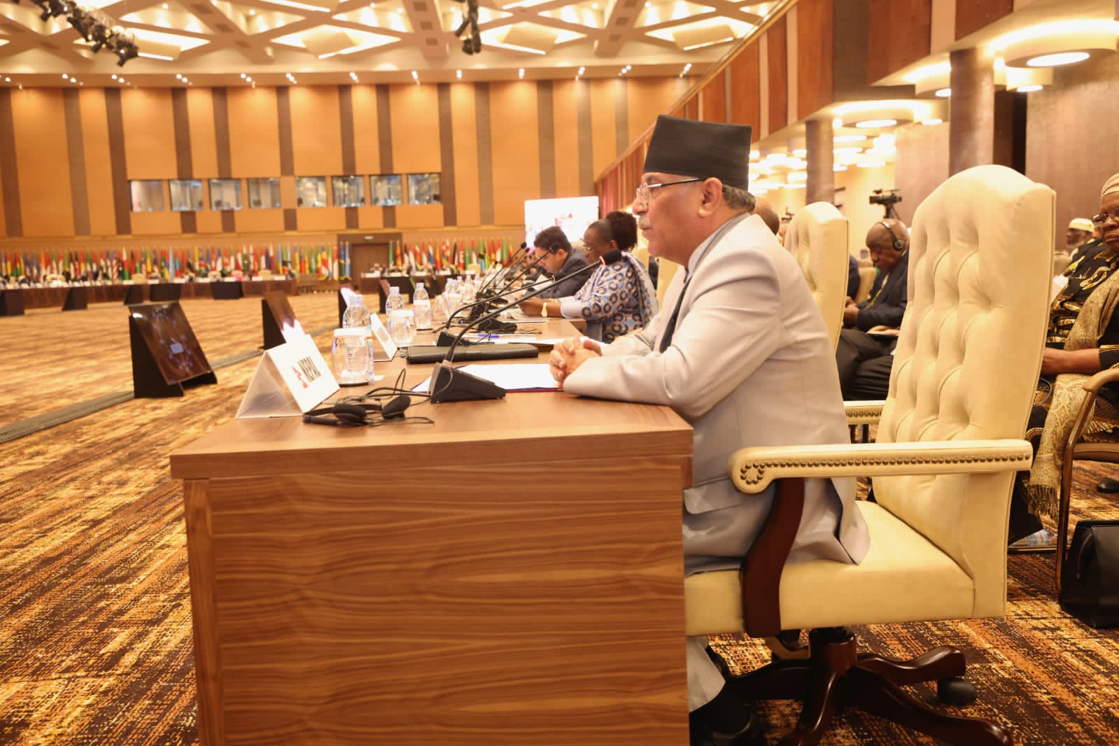 "Honorable Prime Minister Pushpa Kamal Dahal 'Prachanda' at the 19th Summit of the Non-Aligned Movement held in Kampala, the capital of Uganda.
